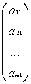 m = beliebig, n = 1    Spaltenvektor:              m = 1 , n = beliebig    Zeilenvektor:  ( a1, a2, ..., an)