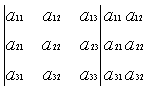 = a11·a22·a33+a12·a23·a31+a13·a21·a32 - (a31·a22·a13+a32·a23·a11+a33·a21·a12) nach Sarrus