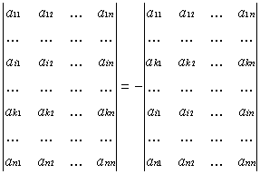 2.   bei Vertauschung von Zeilen oder Spalten ändert sich das Vorzeichen der Determinante