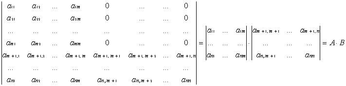 9. |C| = |A·B| ist gleich der Summe der Produkte aller Unterdeterminanten von A mit allen entsprechenden Unterdeterminanten von B.  (Satz von Binet-Cauchy)