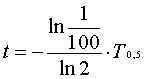 1/100 = e-(ln2/T½)·t ln(1/100)