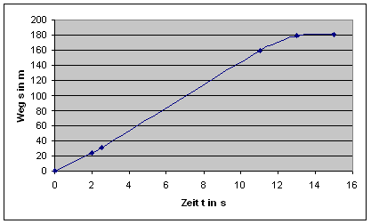 Zeichnen Sie in ihr s-t-Diagramm einen weiteren Graphen, der über den gesamten Zeitraum eine gleichförmige Bewegung mit dieser Geschwindigkeit darstellt!
