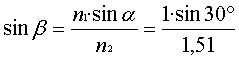 oder sinβ = (sinα·nVakuum-Luft):nVakuum-Wasser = (sin50°·1,000006):1,333333 β = 35,1°