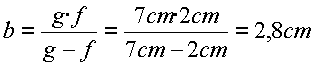 3. Ein Gegenstand, der 1 cm groß ist und 7 cm von einer Linse aufgestellt wird, deren Brennweite 2 cm beträgt, soll scharf abgebildet werden. In welcher Entfernung ist der Schirm aufzustellen? Wie groß ist das Bild?