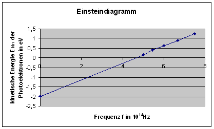 | b) abgelesen: | h = ∆E/∆f = 0,4·10-14 eVs (Anstieg aus erstem und letztem Wertepaar) WA=-2,1eV fG=4,6·1014Hz das entspricht: h = 6,4·10-34Js | ||||||