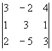 E2 in E1:     -(3 - r - 3s) + 2(2 - r - s) + (1 + 3s) = 3
