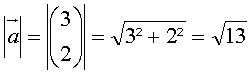 geg:  P(1|3)  Q(4|5)       ges: PQ  Lösung:   PQ = √(4-1)2+(5-3)2 = √13 ≈ 3,6(LE)