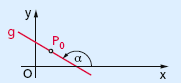 Bsp.:  geg.:  P(3|5)  α = 60°    ges.: Gleichung von g