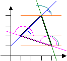 mAB= - ⅓    αc= 161,6°         mAC= 1    αb= 45,0°          mBC= -3    αa= 108,4°