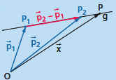 bulletaufstellen eines Verbindungsvektors zwischen einem beliebigen Geraden- punkt X und dem außerhalb der Gera- de liegenden Punkt P: