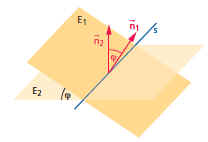 E1 schneidet E2 in der Gerade s:  unter einem Winkel von 52,5°