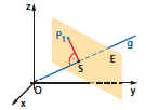 Dabei bezeichnet man den Schnittpunkt zwischen der Ebene E und einer der Koordinatenachsen als Achsen- punkt; die Schnittgerade zwischen der Ebene E und einer der Koordinatenebenen nennt man Spurgerade. Die Gleichung einer Spurgeraden kann sowohl in Form einer vektoriellen Parametergleichung im Raum als auch als parameterfreie Gleichung in der jeweiligen Koordinatenebene angegeben werden.