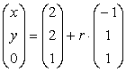 3x + 2y + 4z  =  6       Gleichung der Ebene E in Koordinatenform