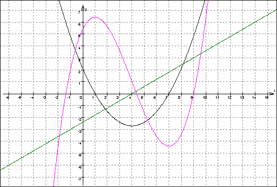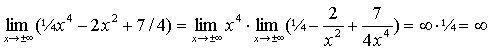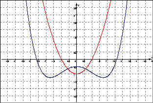3. Nullstellen aus f(x) = 0 = ¼·x4 - 2x2 + 7/4 = ¼·z2 - 2z + 7/4   folgt z1 = 1 und z2 = 7 und damit hat Gf die Nullstellen: xN1=-7   xN2=-1   xN3=1   xN4=7