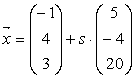 Schnittpunktsberechnung:  5(-1+5s) - 4(4-4s) + 20(3+20s) = 20